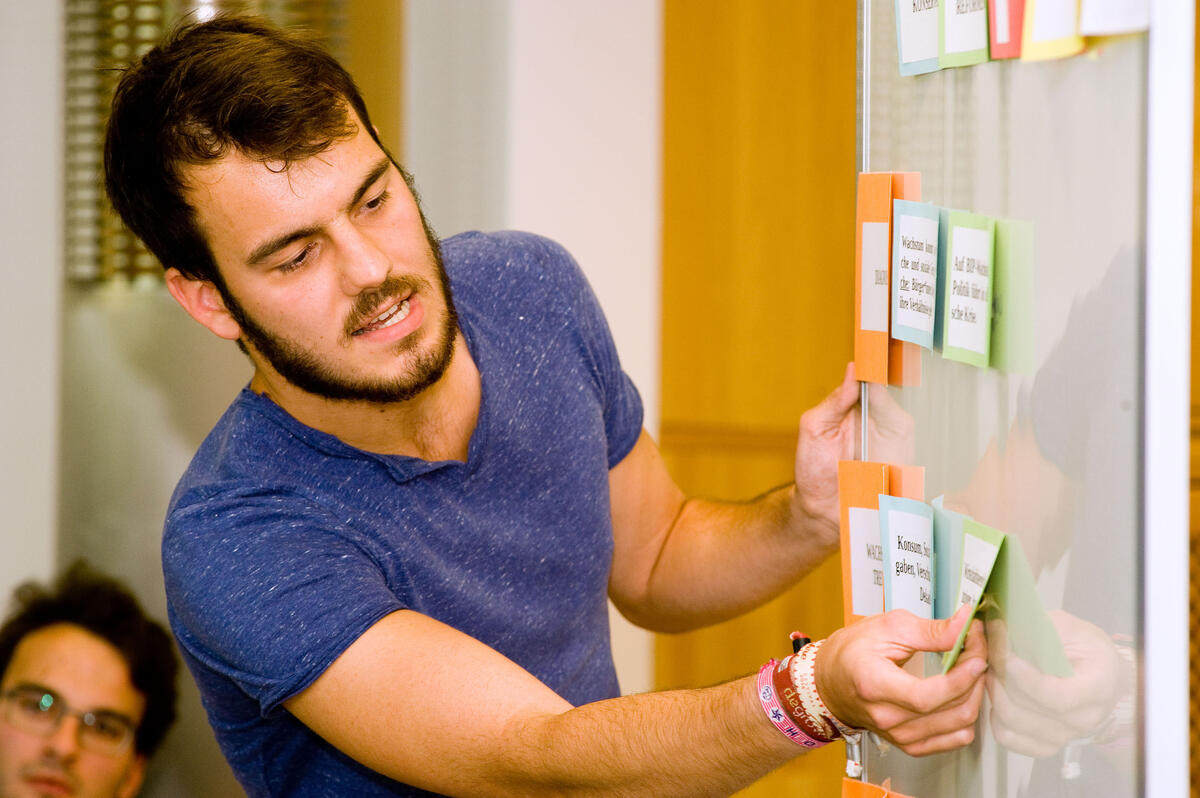 Niko Hübner stellte fünf verschiedene Postwachstumsströmungen vor: die konservative, die sozial-reformistische, die suffizienzorientierte, die kapitalismus-kritische sowie die feministische. Im Anschluss wurden in Kleingruppen folgende Fragestellungen bearbeitet und beantwortet: