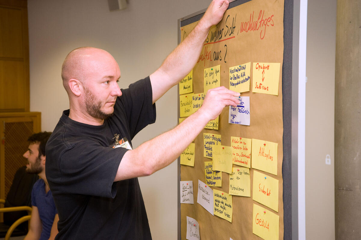 Niko Hübner stellte fünf verschiedene Postwachstumsströmungen vor: die konservative, die sozial-reformistische, die suffizienzorientierte, die kapitalismus-kritische sowie die feministische. Im Anschluss wurden in Kleingruppen folgende Fragestellungen bearbeitet und beantwortet: